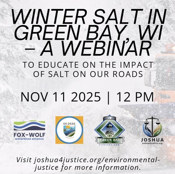 As the snow begins to fall, we would like to educate the public, businesses, and organizations on the impacts of salt on our roads. You will also learn best practices to protect our soil, waterways, and property from salt. Presenters include individuals from the Fox-Wolf Watershed Alliance and the City of Green Bay Public Works Department with facilitation and additional information from the City of De Pere and JOSHUA. Register for the webinar here: https://events.teams.microsoft.com/event/0a3e75e8-22da-4c8e-982c-c3add42eccf3@a7558c17-dedc-42bc-893c-e953e04b231e